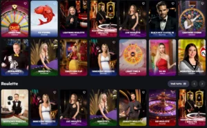 Trovi assolutamente le roulette in diverse varianti e lingue, blackjack, baccaray firmati Evolution, game show e 2 giochi di poker Evolution. I e le croupiers sono reali e mostrano sempre una buona professionalità e coinvolgimento nel gioco.