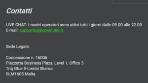 Betwin360 ha supporto clienti, numero di telefono e live chat in italiano?