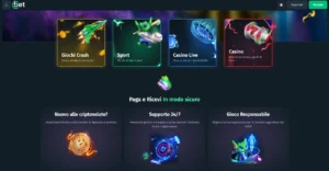 Il layout della piattaforma, presenta uno sfondo scuro che mette in risalto i box colorati delle categorie: giallo per i giochi Crash, verde per lo sport, blu per il casinò live e rosso per il casinò. Le grafiche hanno uno stile cartoon futuristico, con l’alieno mascotte sempre presente, icone morbide e colori fluo.