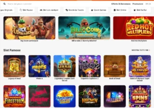 Nella sezione del casinò ci sono le categorie di: Slot Famose, LeoVegas Originals, Slot Nuove, Slot con Jackpot, Quick Games, Giochi da Tavolo, Slot da Bar.