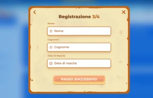 Nel passaggio con titolo “Registrazione 3/4” trovi 3 campi precisi: Nome, Cognome, Data di nascita, Poi premi “PASSO SUCCESSIVO”. - Compila i dati di residenza e contatto
