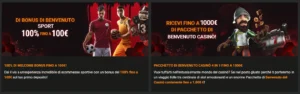 Inserendo il codice S10WB100 al primo deposito (min. 10€), ricevi un bonus del 100% fino a 100€ per scommettere sugli eventi sportivi. Il bonus si attiva subito dopo il deposito. Valido solo per il primo deposito e utenti nuovi.
