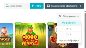 Dalla lobby è possibile filtrare i giochi per categoria e ordinarli per popolarità, ordine alfabetico o jackpot. Un elemento che considero particolarmente utile è la presenza dei filtri per provider e della barra di ricerca: strumenti essenziali per orientarsi rapidamente in un catalogo di queste dimensioni.