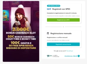 2️⃣ 50 Free Spin + 100€ Bonus Gratis (senza deposito)